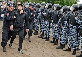 Антикоррупционный митинг прошел на Марсовом поле. Сотрудники правоохранительных органов во время задержания участника митинга.