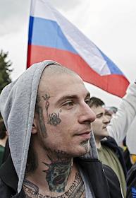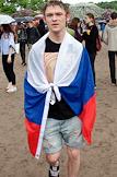 Антикоррупционный митинг прошел на Марсовом поле. Участник митинга в наброшенном на себя флаге России.