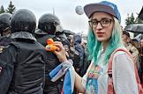Антикоррупционный митинг прошел на Марсовом поле. Девушка с резиновым утенком в руках позади шеренги сотрудников правоохранительных органов.