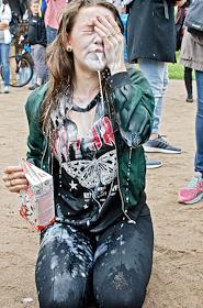 Антикоррупционный митинг прошел на Марсовом поле. Девушка, сидящая на земле, омывается молоком во время митинга.