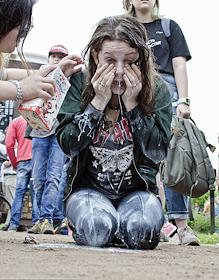 Антикоррупционный митинг прошел на Марсовом поле. Девушка, облитая молоком, сидит на земле во время митинга.