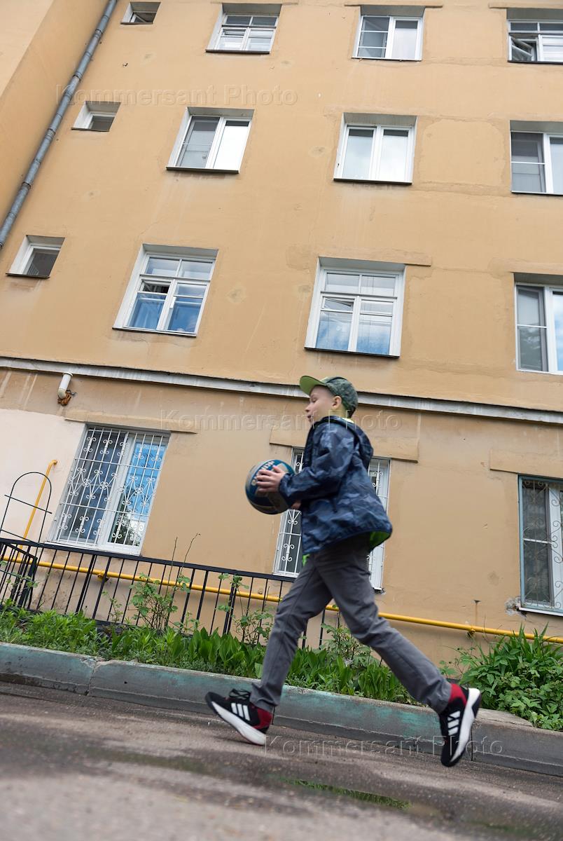 Пятиэтажный сталинский дом по адресу Осташковская, дом 17. Вид на детскую площадку во дворе из окна квартиры.