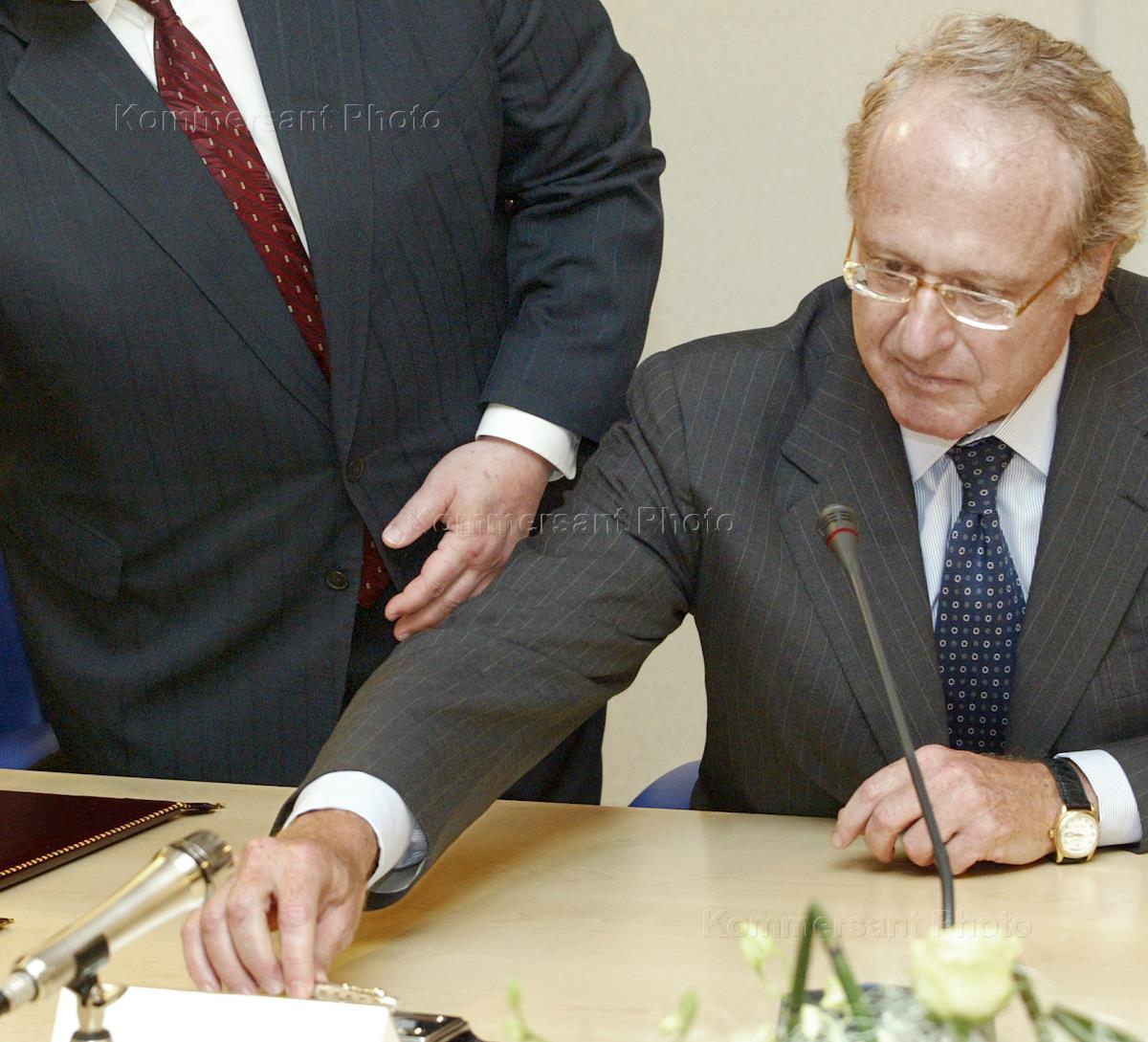 Генеральный менеджер "Enel" Паоло Скарони (справа) на церемонии подписания генерального соглашения и договора на управление Северо-Западной ТЭЦ между РАО "ЕЭС России" и итальяно-российским консорциумом "Enel ESN Energo".