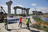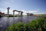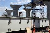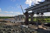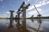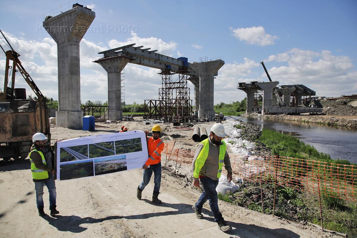 Работы по строительству моста через реку Ижора, участка платной дороги М-11 "Москва - Санкт-Петербург", у деревни Федоровское.