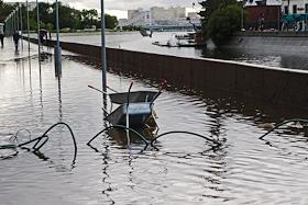 Непогода в Москве. Последствия ливневых дождей. Затопленная часть тротуара.