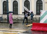 Непогода в Москве. Последствия ливневых дождей. Люди под дождем на улице.