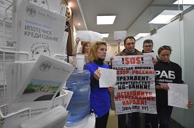 Акция валютных ипотечников в Центральном Банке России на Неглинной улице.