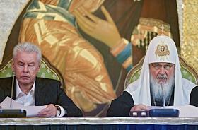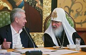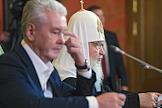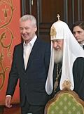 VII заседание попечительского совета Фонда "Поддержки строительства храмов г. Москвы" прошло в Храме Христа Спасителя. Мэр Москвы Сергей Собянин (слева) и Патриарх Московский и Всея Руси Кирилл (справа) во время заседания.