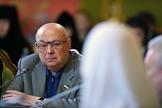 VII заседание попечительского совета Фонда "Поддержки строительства храмов г. Москвы" прошло в Храме Христа Спасителя. Член комитета Государственной думы России по транспорту и строительству Владимир Ресин (слева) во время заседания.