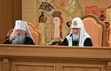 VII заседание попечительского совета Фонда "Поддержки строительства храмов г. Москвы" прошло в Храме Христа Спасителя. Патриарх Московский и Всея Руси Кирилл (справа) во время заседания.