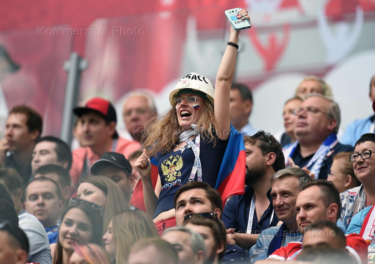 Кубок конфедераций FIFA 2017. Матч между сборными России и Новой Зеландии прошел на стадионе "Санкт-Петербург". Болельщики сборной России на трибуне во время матча.