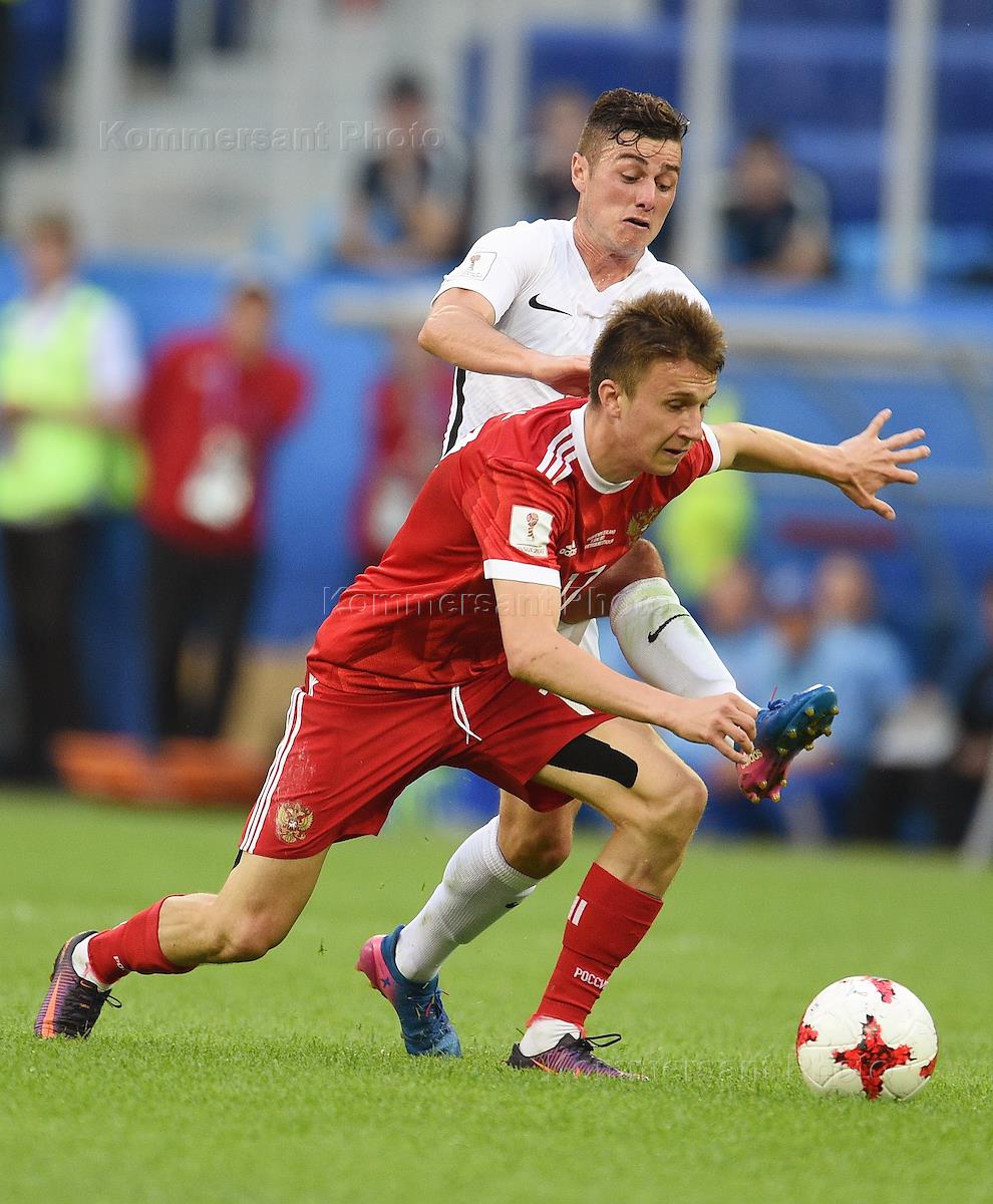 Кубок конфедераций FIFA 2017. Матч между сборными России и Новой Зеландии прошел на стадионе "Санкт-Петербург". Игрок сборной России Денис Глушаков (слева) во время матча.