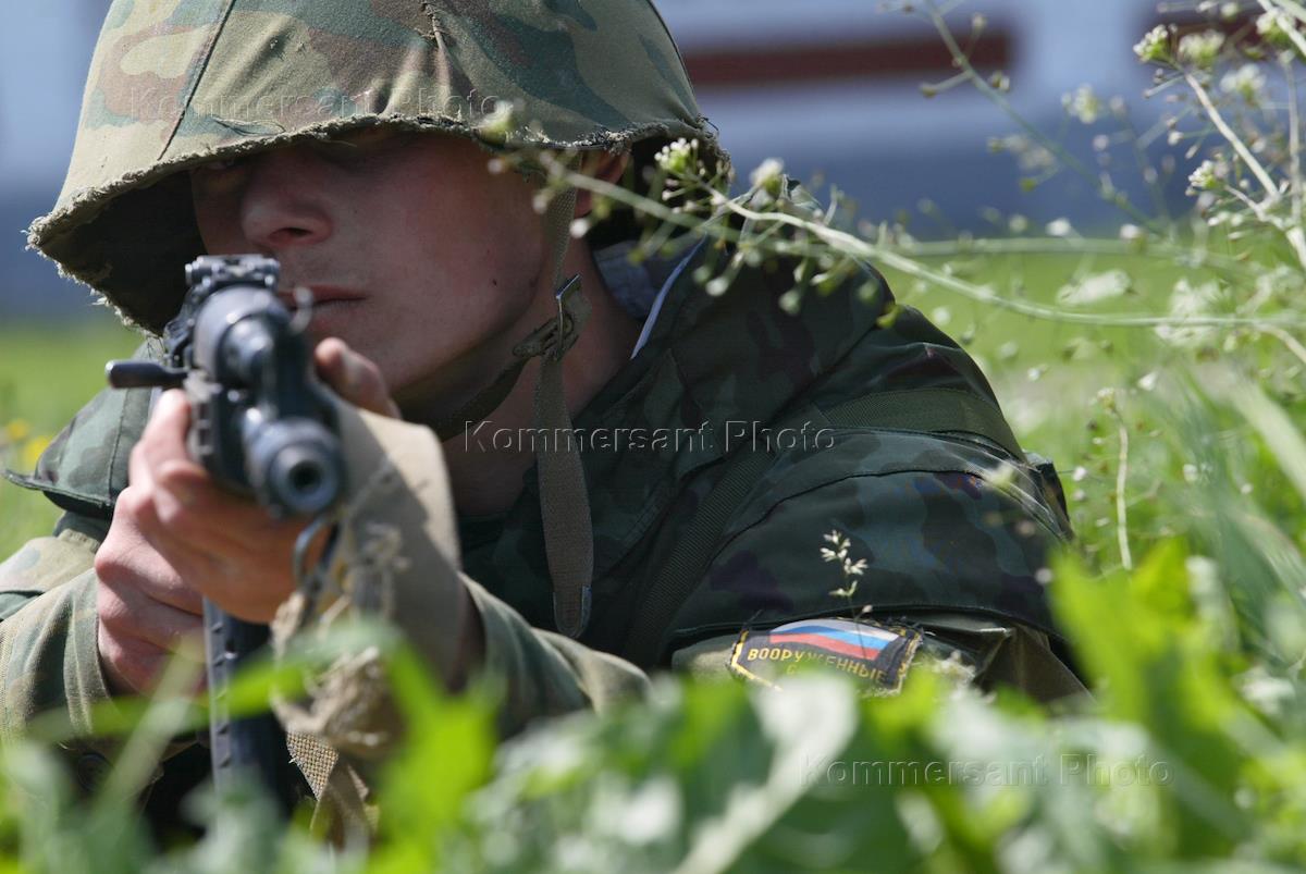 Солдат Кантемировской дивизии во время показательных учений на территории дивизии.