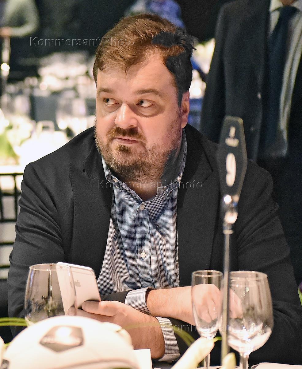 Ужин #HublotLovesFootball, посвященный открытию бутика Hublot, в ЦУМе. Спортивный телеведущий Василий Уткин во время ужина.