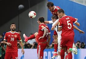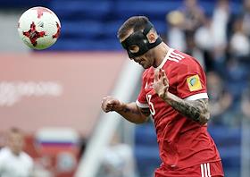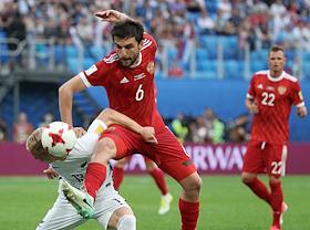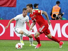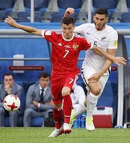 Кубок конфедераций FIFA 2017. Матч между сборными России и Новой Зеландии прошел на стадионе "Санкт-Петербург". Игрок сборной России Александ Самедов (слева) во время матча.
