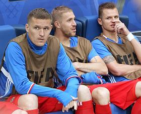 Кубок конфедераций FIFA 2017. Матч между сборными России и Новой Зеландии прошел на стадионе "Санкт-Петербург". Слева направо: игроки сборной России Юрий Жирков, Федор Кудряшов и Денис Глушаков перед началом матча.