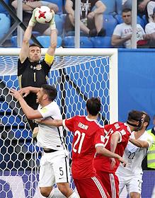 Кубок конфедераций FIFA 2017. Матч между сборными России и Новой Зеландии прошел на стадионе "Санкт-Петербург". Вратарь сборной России Игорь Акинфеев во время матча.