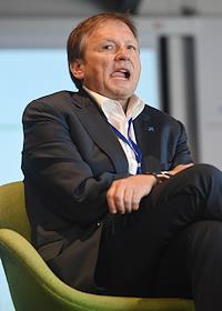 Внеочередной съезд "Партии роста" прошел в лофт-пространстве Deworkacy на "Красном Октябре". Член градостроительного Совета Фонда "Сколково" Виктор Сиднев во время работы съезда.