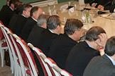 Президент, председатель правления "Внешторгбанка" (ВТБ) Андрей Костин (слева), председатель Правительства России Михаил Фрадков (справа) и его первый заместитель Александр Жуков (в центре) во время встречи Президента России с представителями бизнеса России. Встреча прошла в Кремле.