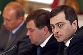 Заместитель главы администрации Президента России Владислав Сурков (в центре) перед началом встречи Президента России с представителями бизнеса России. Встреча прошла в Кремле.