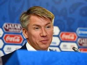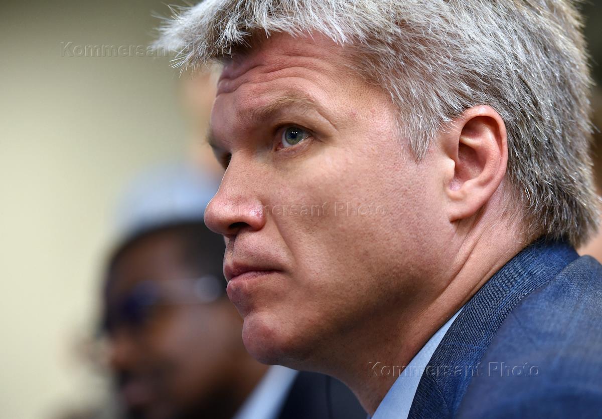 Министр спорта России Павел Колобков на пресс-конференции перед стартом Кубка конфедераций FIFA 2017 в медиацентре стадиона "Санкт-Петербург Арена".