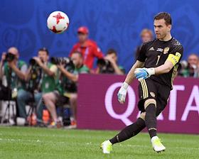 Кубок конфедераций FIFA 2017. Матч между сборными России и Новой Зеландии прошел на стадионе "Санкт-Петербург". Игрок сборной России Игорь Акинфенев во время матча.