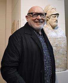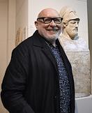 Церемония открытия выставки Recycle Group. Homo virtualis в Государственном музее изобразительных искусств (ГМИИ) имени А.С. Пушкина. Писатель Александр Шаталов во время церемонии.