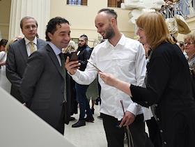 Церемония открытия выставки Recycle Group. Homo virtualis в Государственном музее изобразительных искусств (ГМИИ) имени А.С. Пушкина. Продюсер Александр Вайнштейн (в центре) во время церемонии.