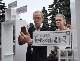 Вернисаж выставки Recycle Group. Homo virtualis в Государственном музее изобразительных искусств имени А.С. Пушкина. Посетитель во время вернисажа.
