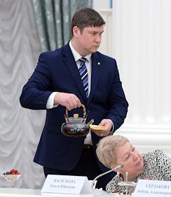 Встреча президента России Владимира Путина с учителями – наставниками выпускных классов в Кремле. Фотограф во время встречи.