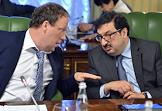 Генеральный директор ЗАО "Медиахолдинг "Эксперт", секретарь Общественной палаты России Валерий Фадеев (слева) и член Генерального совета партии "Единая Россия" Владимир Плигин (справа) перед началом заседания правительственной комиссии по координации деятельности Открытого правительства. Заседание прошло в Доме правительства России.