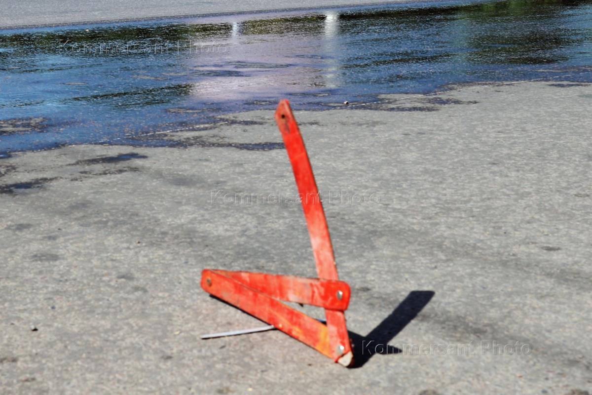 Genre photography. Road sign "No stopping" near the building of "Russian Post".