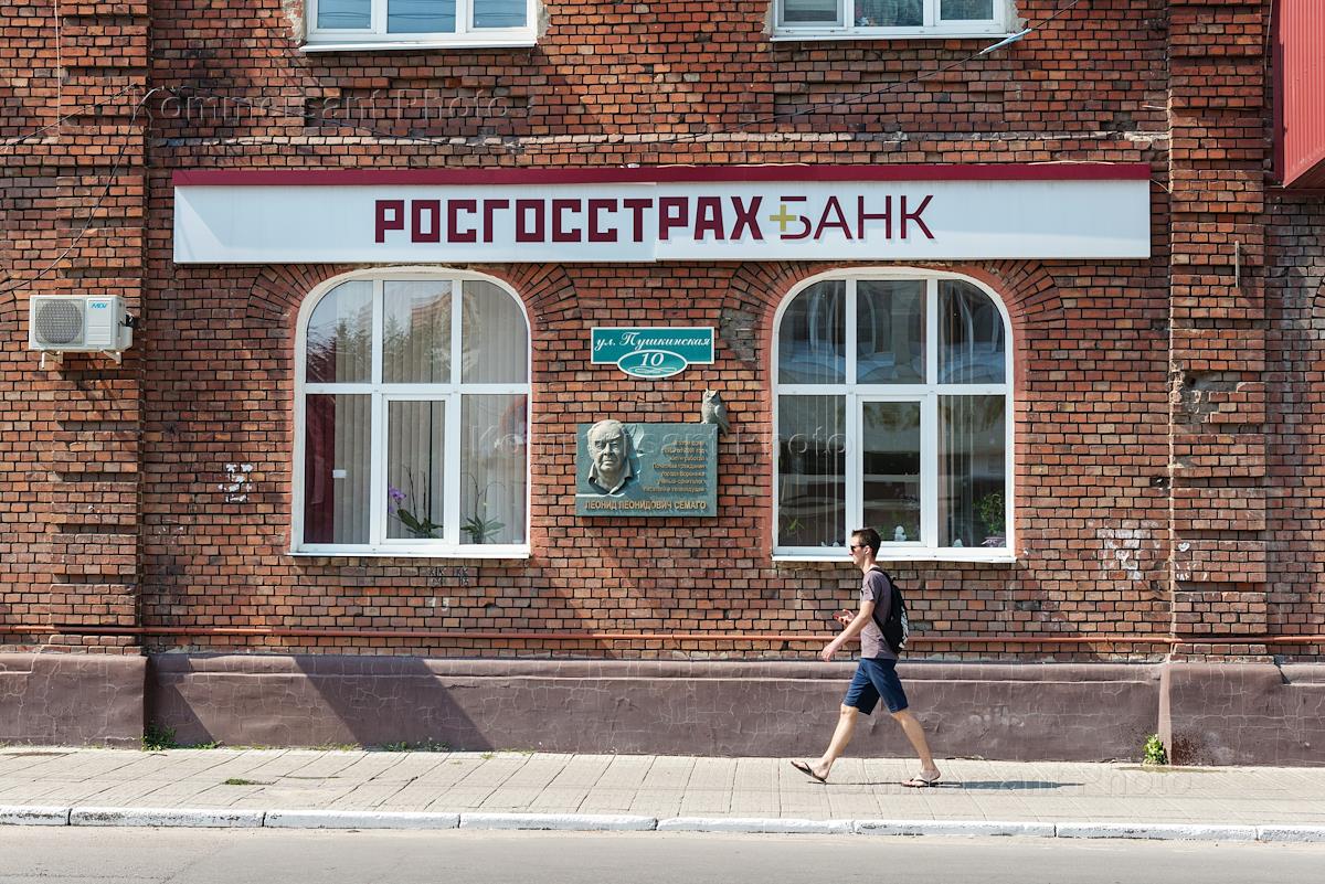 Жанровая фотография. Мужчина проходит мимо банка "Росгосстрах банк".