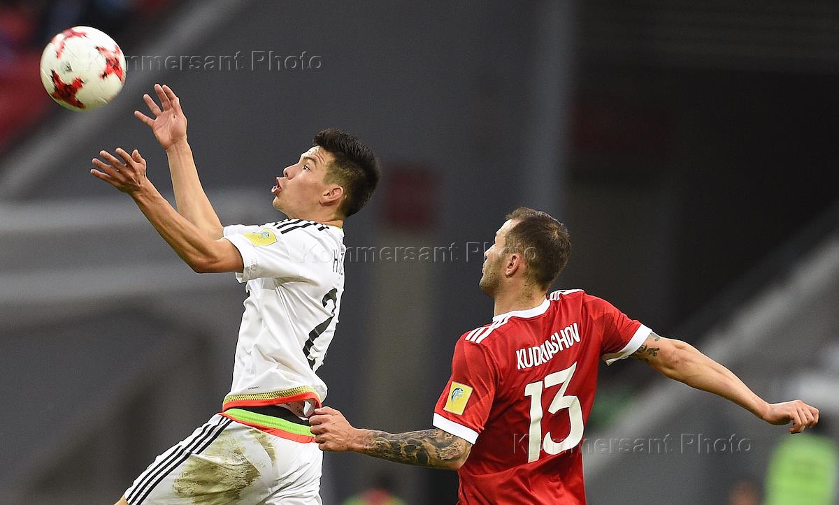Кубок конфедераций FIFA 2017. Матч между сборными России и Мексики по футболу прошел на стадионе "Казань-Арена". Игрок сборной России Александр Самедов (справа) во время матча.