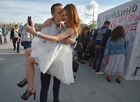 Празднование регионального выпускного "Взлетай" в парке "Патриот". Выпускники средних школ Московской области во время праздничных мероприятий.