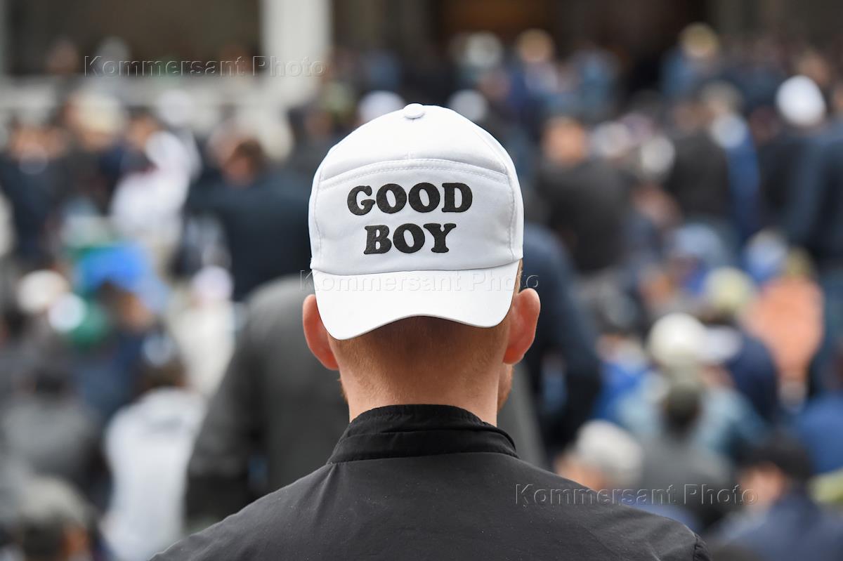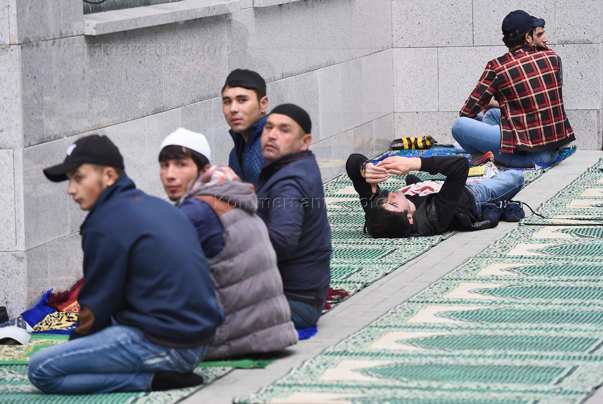 Мусульмане перед торжественным намазом в день праздника Ураза-байрам в Московской Соборной мечети.