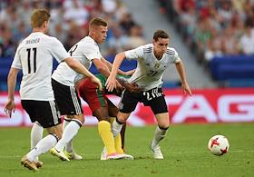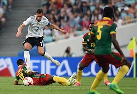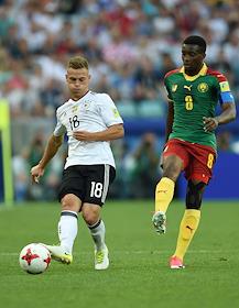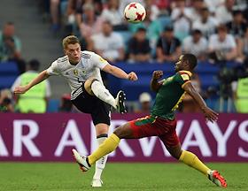 Кубок конфедераций FIFA 2017. Матч между сборными Германии и Камерун на стадионе "Фишт". Игрок сборной Германии Маттиас Лукас Гинтер (слева) во время матча.