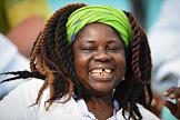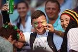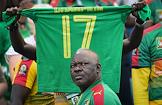Кубок конфедераций FIFA 2017. Матч между сборными Германии и Камерун на стадионе "Фишт". Болельщик сборной Камеруна во время матча.