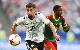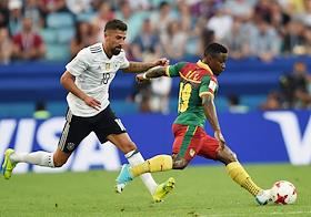 Кубок конфедераций FIFA 2017. Матч между сборными Германии и Камерун на стадионе "Фишт". Игрок сборной Германии Керем Демирбай (слева) во время матча.