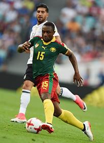 Кубок конфедераций FIFA 2017. Матч между сборными Германии и Камерун на стадионе "Фишт". Игрок сборной Камеруна Венсан Абубакар (слева) во время матча.