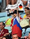 Кубок конфедераций FIFA 2017. Матч между сборными Германии и Камерун на стадионе "Фишт". Болельщики сборной Германии во время матча.
