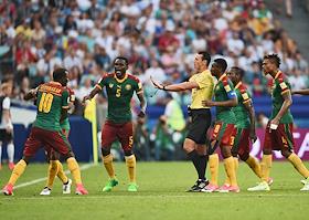 Кубок конфедераций FIFA 2017. Матч между сборными Германии и Камерун на стадионе "Фишт". Игроки сборной Камеруна во время матча.