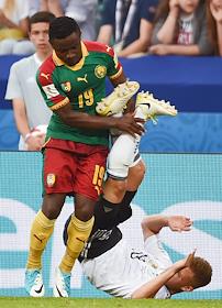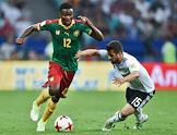 Кубок конфедераций FIFA 2017. Матч между сборными Германии и Камерун на стадионе "Фишт". Игрок сборной Камеруна Коллинс Фаи (слева) во время матча.