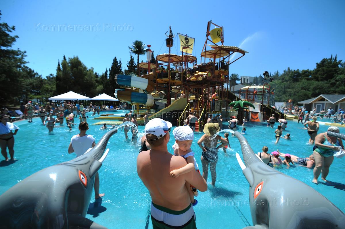 Жанровая фотография. Отдыхающие в специализированном детском аквапарке в отеле "Ялта-Интурист".