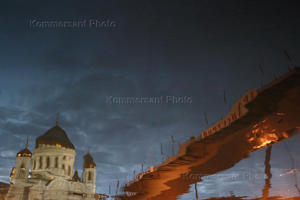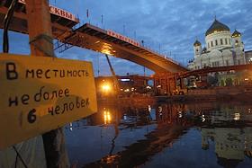 Строительство пешеходного моста от Храма Христа Спасителя к Берсеневской набережной.