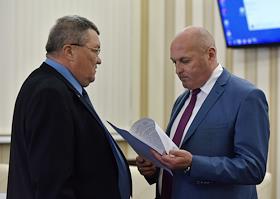Выездное cовещание Совета безопасности России в Южном Федеральном округе. Полномочный представитель президента России в Южном Федеральном округе Владимир Устинов (слева) перед началом совещания.