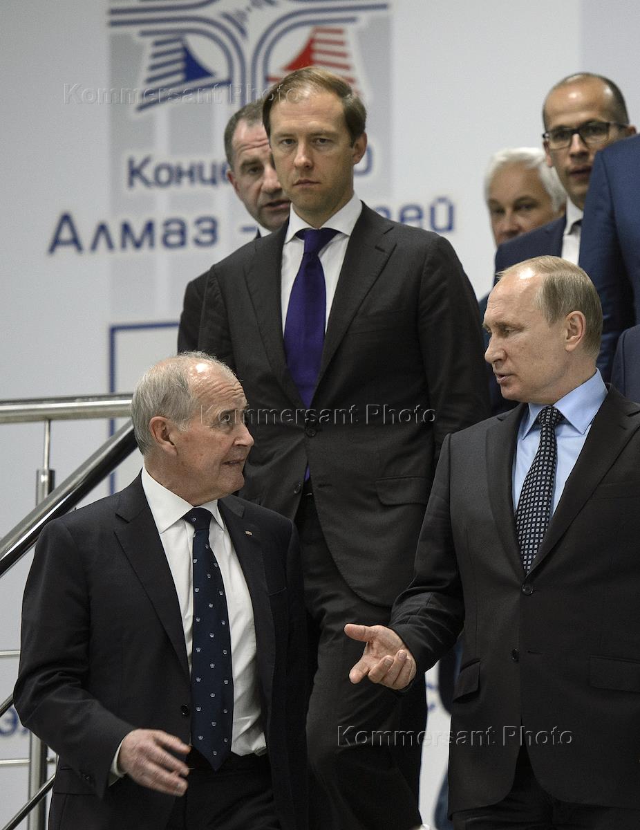 Рабочая поездка президента России Владимира Путина в Ижевск. Слева направо: генеральный директор АО ИЭМЗ "Купол" Фанил Зиятдинов, министр промышленности и торговли России Денис Мантуров, президент России Владимир Путин и временно исполняющий обязанности главы Удмуртской Республики Александр Бречалов во время посещения предприятия "Ижевский электромеханический завод "Купол" концерна ВКО "Алмаз-Антей".