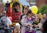 Парад колясок в парке "Малиновка". Дети в гимнастерках и пилотках в игрушечном самолете.