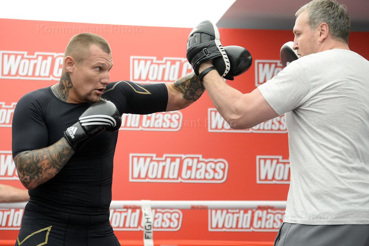 Российский боксер Александр Поветкин во время открытой тренировки в фитнесс-клубе "World Class".