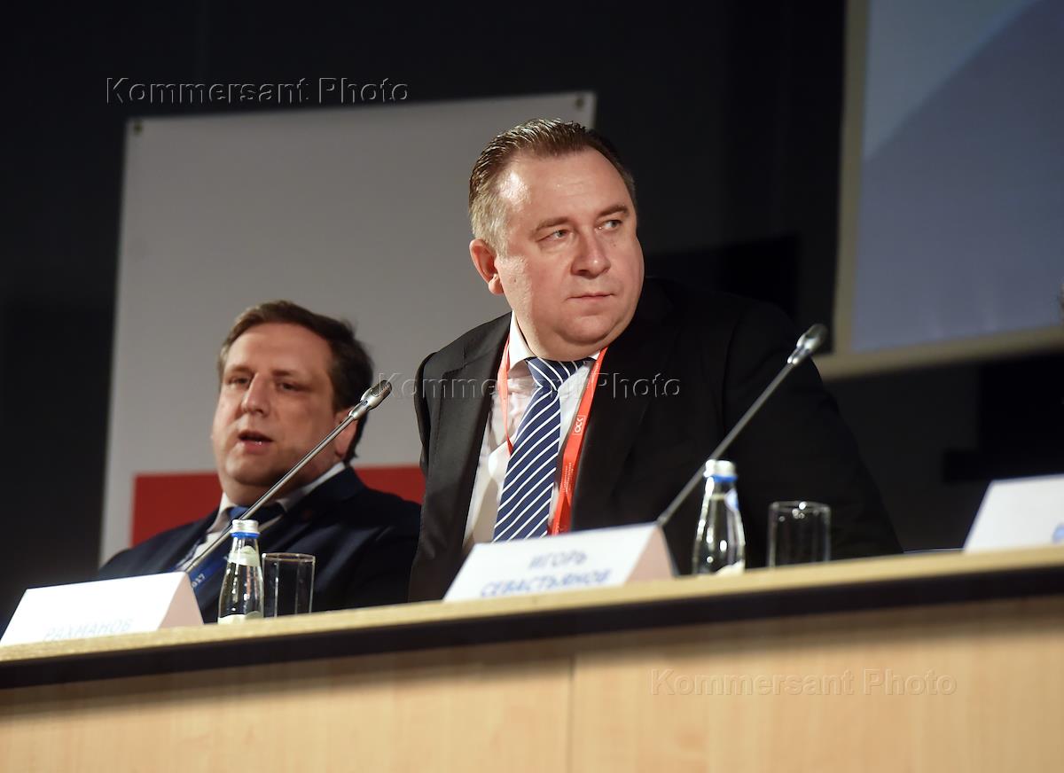 Международный военно-морской салон 2017 (МВМС). Первый день работы. Президент Объединенной судостроительной корпорации (ОСК) Алексей Рахманов (справа) на салоне.